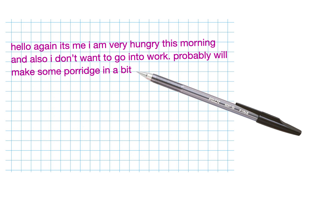 Find yourself idly chatting to the void underneath your grocery list in the Notes app. Find yourself, on foggy hungover days, writing yourself out of bed again. Find yourself spending half an hour editing an anecdotal iMessage to your best friend - not because they care at all about its content, but just because you want its sentence structure to be perfect.